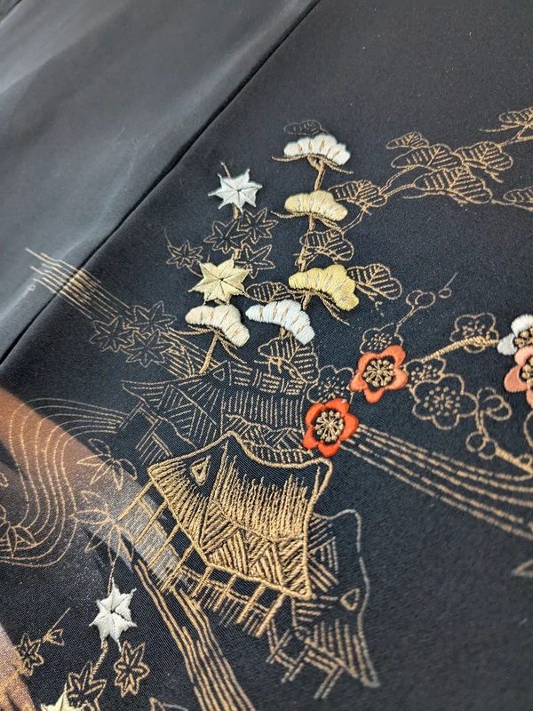 - Stof: Zijde, met enige borduursels.